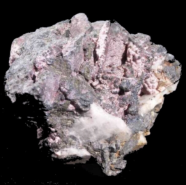 Wismut gediegen in Kristallen, mit einem Anflug von Kobaltblüte Schneeberg/Sa. Stufenbreite ca. 6 cm, der Kristall in der Mitte ist ca. 1 cm | |