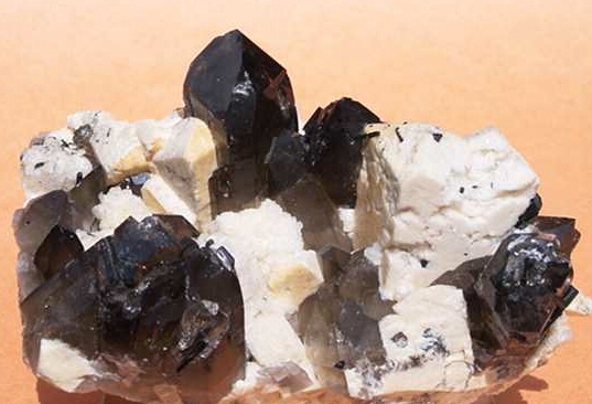 Rauchquarz-xx, Orthoklas-xx, Albit-xx und Turmalin-xx Rupprechtsbruch, Breite der Stufe ca. 8 cm Fund 1978 | |||||||||||||||||||||||||||||||||||||||||||||||||||||||||||||||||||||||||||||||||||||||||||||||||||