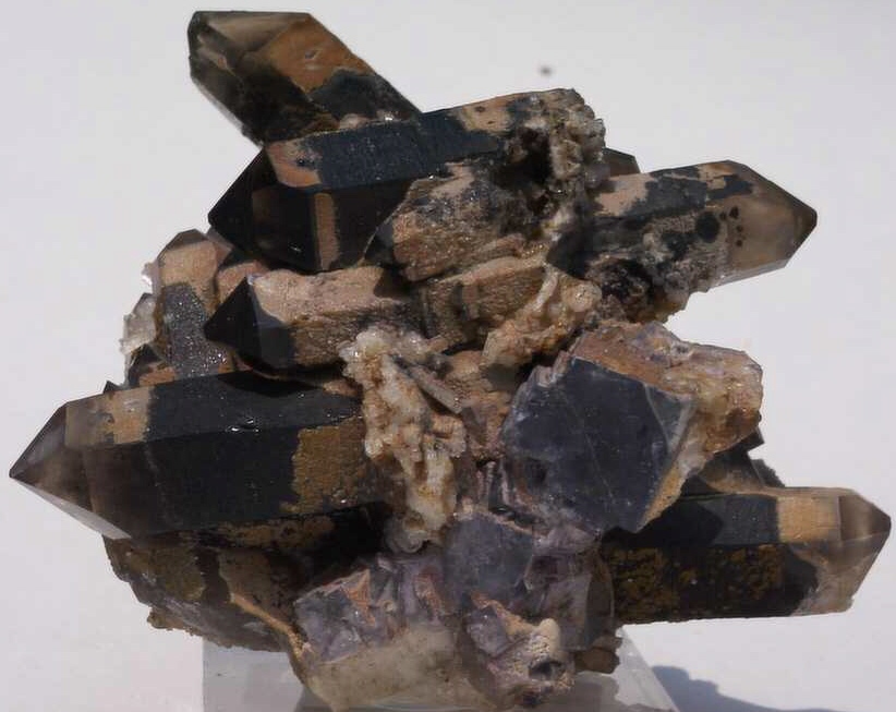 Doppelendige Rauchquarzkristalle mit Fluoritkristallen, Albit und Gilbertit Rondellbruch, Epprechtstein Stufenbreite ca. 10 cm Fund um 1980 | |||||||||||||||||||||||||||||||||||||||||||||||||||||||||||||||||||||||||||||||||||||||||||||||||||