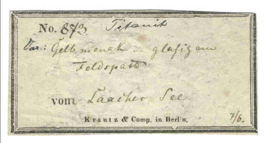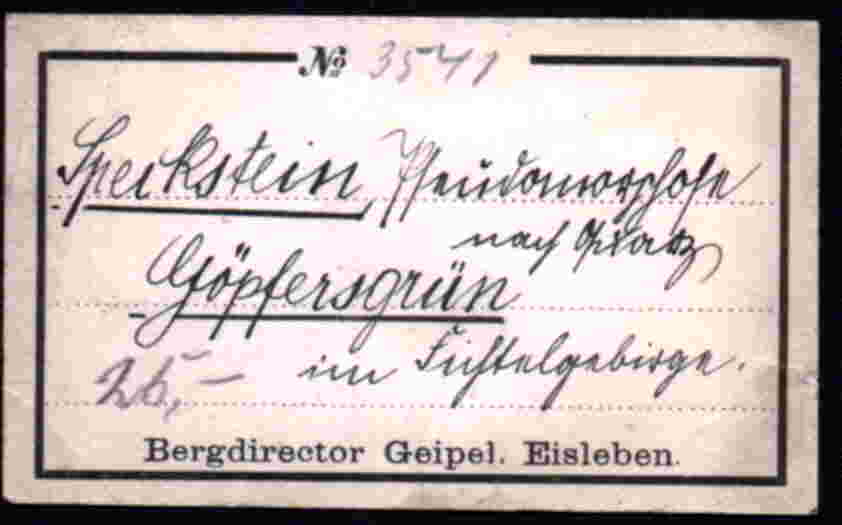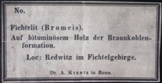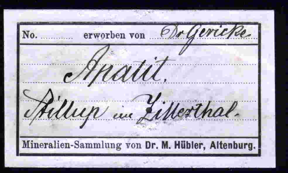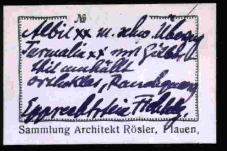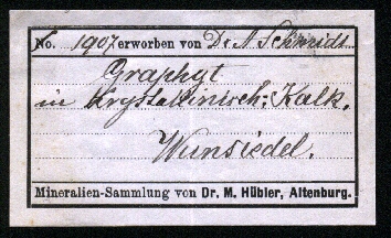 Originalgröße 7,8 cm x 4,7 cm Originalgröße 7,8 cm x 4,7 cm beide aus der Sammlung Hübler, Altenburg bei dem Hinweis auf dem 2. Etikett: "1907 erworben von Dr. A. Schmidt" handelt es sich um den Apotheker Dr. Albert Schmidt aus Wunsiedel, dessen Sammlung heute im Fichtelgebirgsmuseum in Wunsiedel zu sehen ist. | ||||||||||||||||||||||||||||||||||||||||||||||||||||||||||||||||||||||||||||||||||||||||||||||||||