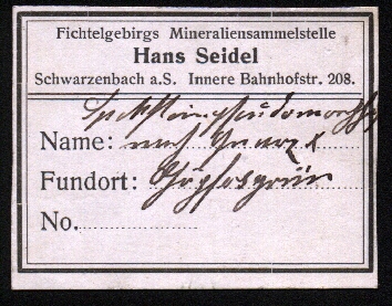 Originalgröße 5,5 cm x 4,2 cm von dem Schwarzenbacher Mineraliensammler Hans Seidel geboren 1877 gestorben 1943 | |||||||||||||||||||||||||||||||||||||||||||||||||||||||||||||||||||||||||||||||||||||||||||||||||||