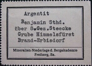 Größe 64 x 48 mm Druck: K. S. Mineralien-Niederlage zu Freiberg ca. 1880-1920 | ||||||||||||||||||||||||||||||||||||||||||||||||||||||||||||||||||||||||||||||||||||||||||||