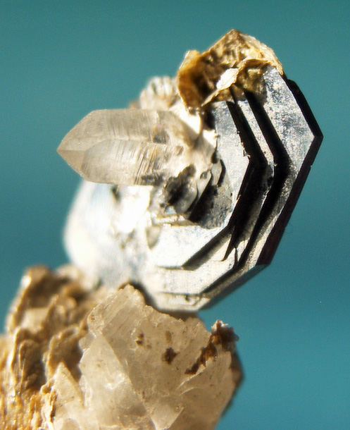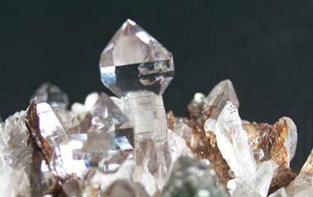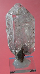 Zepterquarz-x Hennsteige, Zemmgrund, Größe des wasserklaren Kristalles ca. 2 cm, gefunden 1986 |
