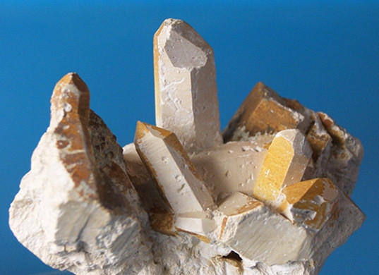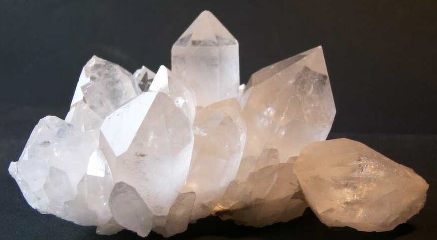 Quarz-xx in schlanker und gedrungener Ausbildung, Breite der Stufe ca. 9 cm, Fund 1991 | |