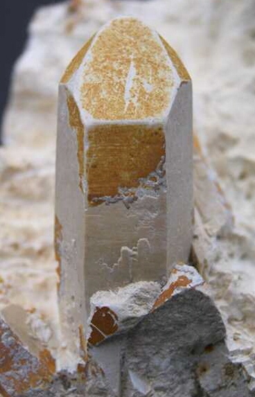 Steatit (Speckstein) pseudomorph nach Quarz-x Höhe des Kristalls 3 cm | |