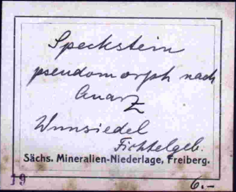Pseudomorphose von Steatit nach Quarz Stufenbreite ca. 6 cm Fund ca. 1910 | |