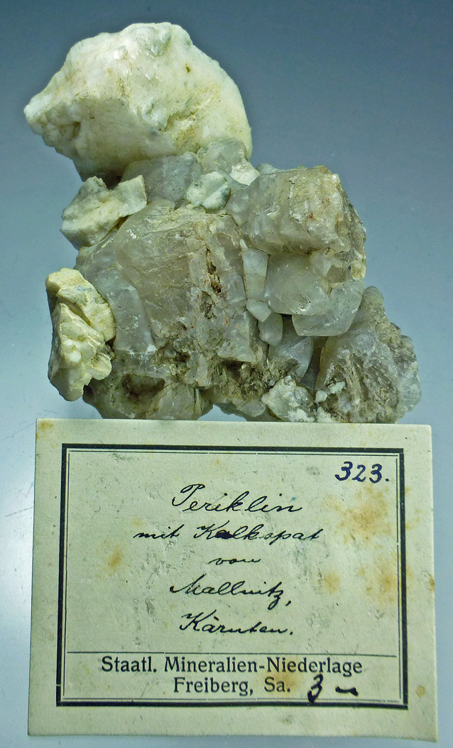 Bestell-Nr.: AE72 Periklin-xx mit Calcit-xx Mallnitz (wohl vom Auernig) Kärnten Größe der Stufe ca. 9 x 6 x 5 cm Etikett Freiberg Preis 35,- | ||||||||||||||||||||||||||||||||||||||||||||||||||||||||||||||||||||||||||||||||||||||||||||||||||||||||