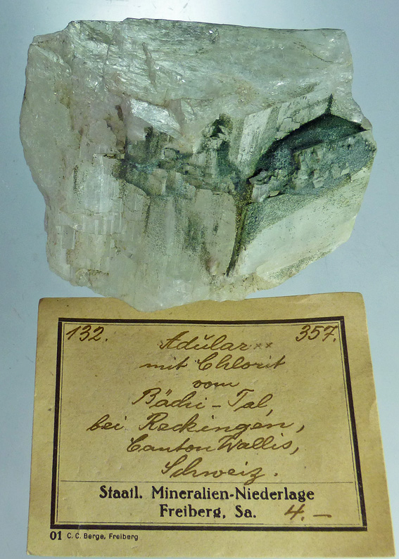 Bestell-Nr. AE119 Adular mit Chlorit Bächi-Tal bei Reckingen Stufengröße ca. 6 x 5,5 x 4 cm Etikett Freiberg Preis 26,- Euro | ||||||||||||||||||||||||||||||||||||||||||||||||||||||||||||||||||||||||||||||||||||||||||||||||||||||||
