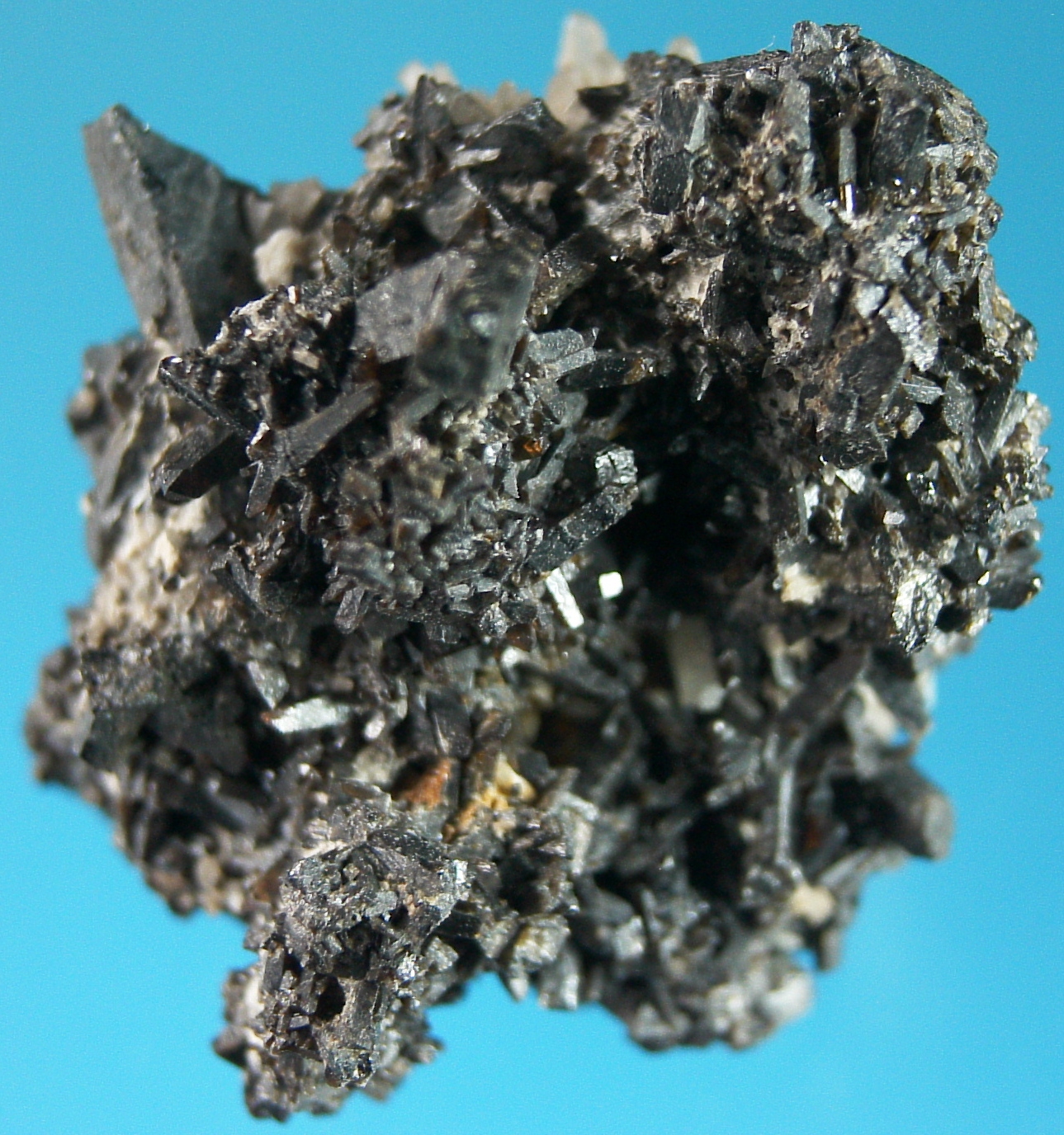 Kassiterit-xx in der auch nicht häufigen Ausbildung als "Nadelzinn" Cornwall, England. Das Stück wurde von dem Londoner Brauereibesitzer Isaak Walker bei einer Auktion, die Henry Heuland im Jahre 1830 unter der Lot-Nr. 342 durchführte, erworben. Die Größe beträgt ca. 3 x 3 cm | ||||||||||||||||||||||||||||||||||||||||||||||||||||||||||||||||||||||||||||||||||||||||||||||||||||||||