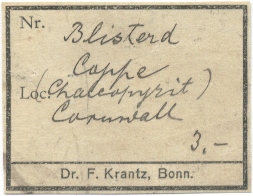 Chalkopyrit in der seltenen Ausbildung als "Blasenkupfer" aus Cornwall, England. Die Stufe ist 8 cm breit. | ||||||||||||||||||||||||||||||||||||||||||||||||||||||||||||||||||||||||||||||||||||||||||||||||||||||||