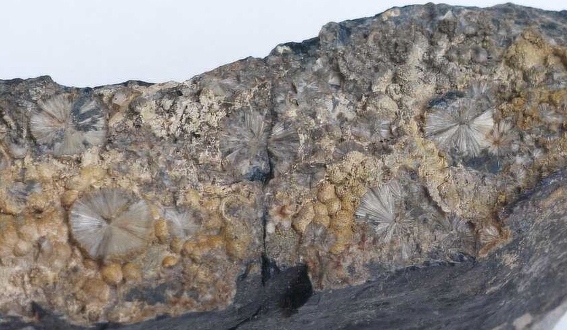 Mineralien aus Suttenbach In einem kleinen Steinbruch in Altsuttenbach bei Helmbrechts wurden sehr schöne Wavellitkristalle in offenen Rosetten und geschlossenen Halbkugeln gefunden. Leider ist der Bruch bereits seit den 80-er Jahren verfüllt und bepflanzt und in der Landschaft nicht mehr erkennbar. | ||||||||||||||||||||||||||||||||||||||||||||||||||||||||||||||||||||||||||||||||||||||||||||