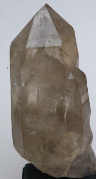 Rauchquarzkristall mit einer Höhe von 23 cm aus dem "Jahrhundert-Fund" von 1989 in sehr guter Qualität, hochglänzend und transparent. |