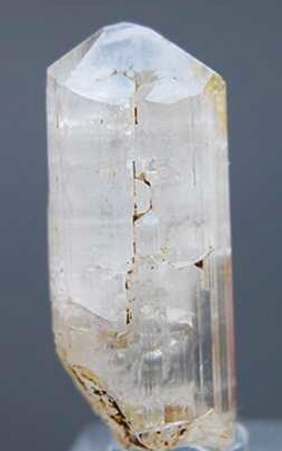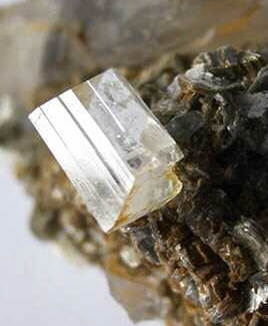 Euklaskristall mit beidseitig ausgebildeten Kopfflächen und einer Größe von 1,2 cm auf Matrix, gefunden um 1987 |